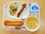 10月20日の給食は「牛乳、背割れ米粉コッペパン、カリーヴルスト、しょうゆフレン...
