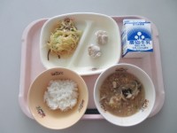 今日の給食は、「ごはん きりざい じゃがいもきんぴら 雪見汁 牛乳」でした。今日...